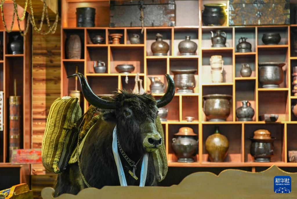 茶馆主人珠珠将藏式茶馆与民俗陈列方式相结合,让顾客在品尝美食的同时,沉浸式体验民俗文化。茶馆四周和过道上摆满700余种3000多件西藏民俗物件,有给牛犊喂奶的牛角奶瓶、火柴盒大小的便携酥油盒、防沙尘和雪盲的牦牛毛墨镜等。牧民生产生活用具几乎都能在这里找到,独具风格的茶馆俨然成为一座藏北游牧文化“博物馆”。