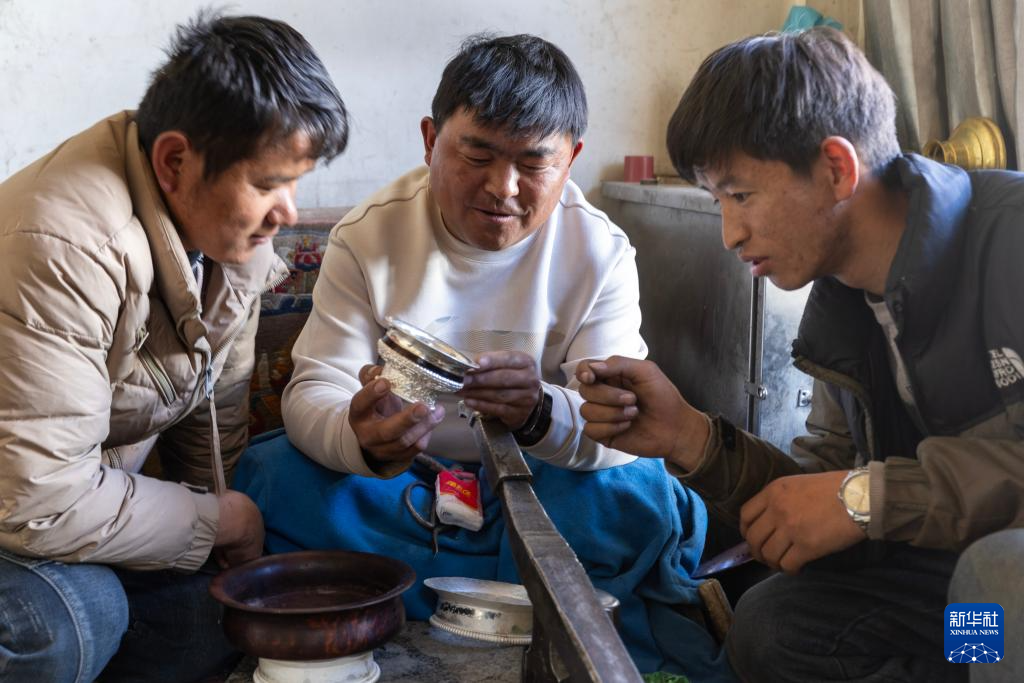 3月6日,扎西吉彩的手工匠人在讨论银器的造型。