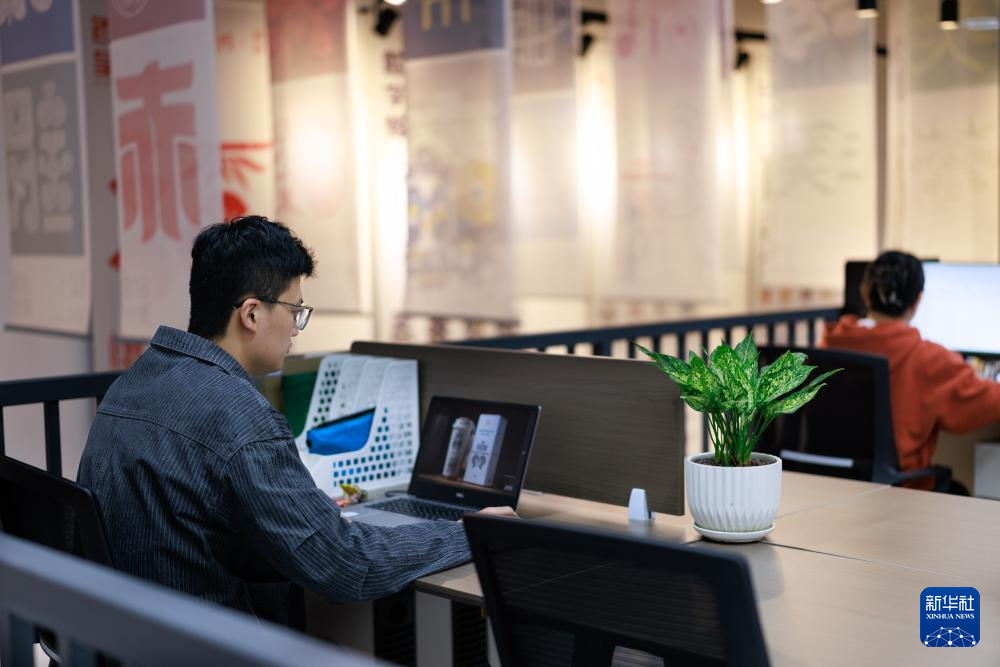 4月22日,设计师在贵州工业设计城的工作室内工作。