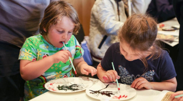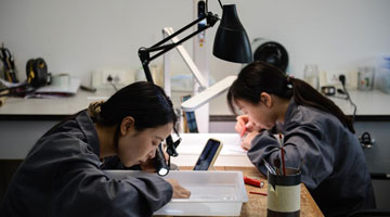 4月28日,观众在青岛电影博物馆电影场记板装饰墙前拍摄。