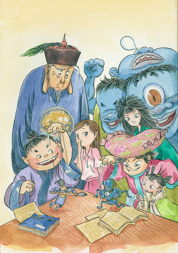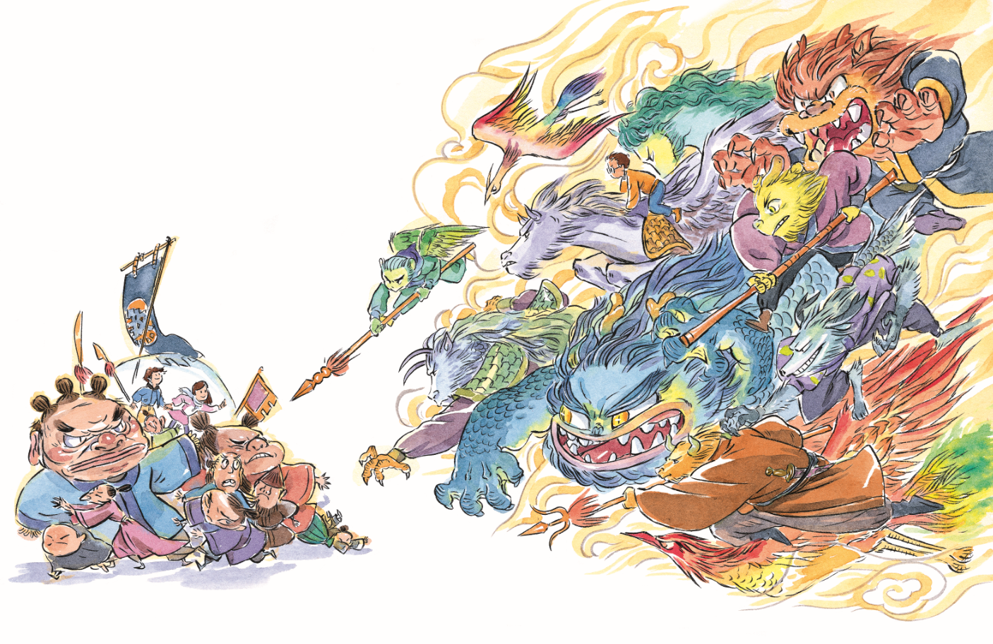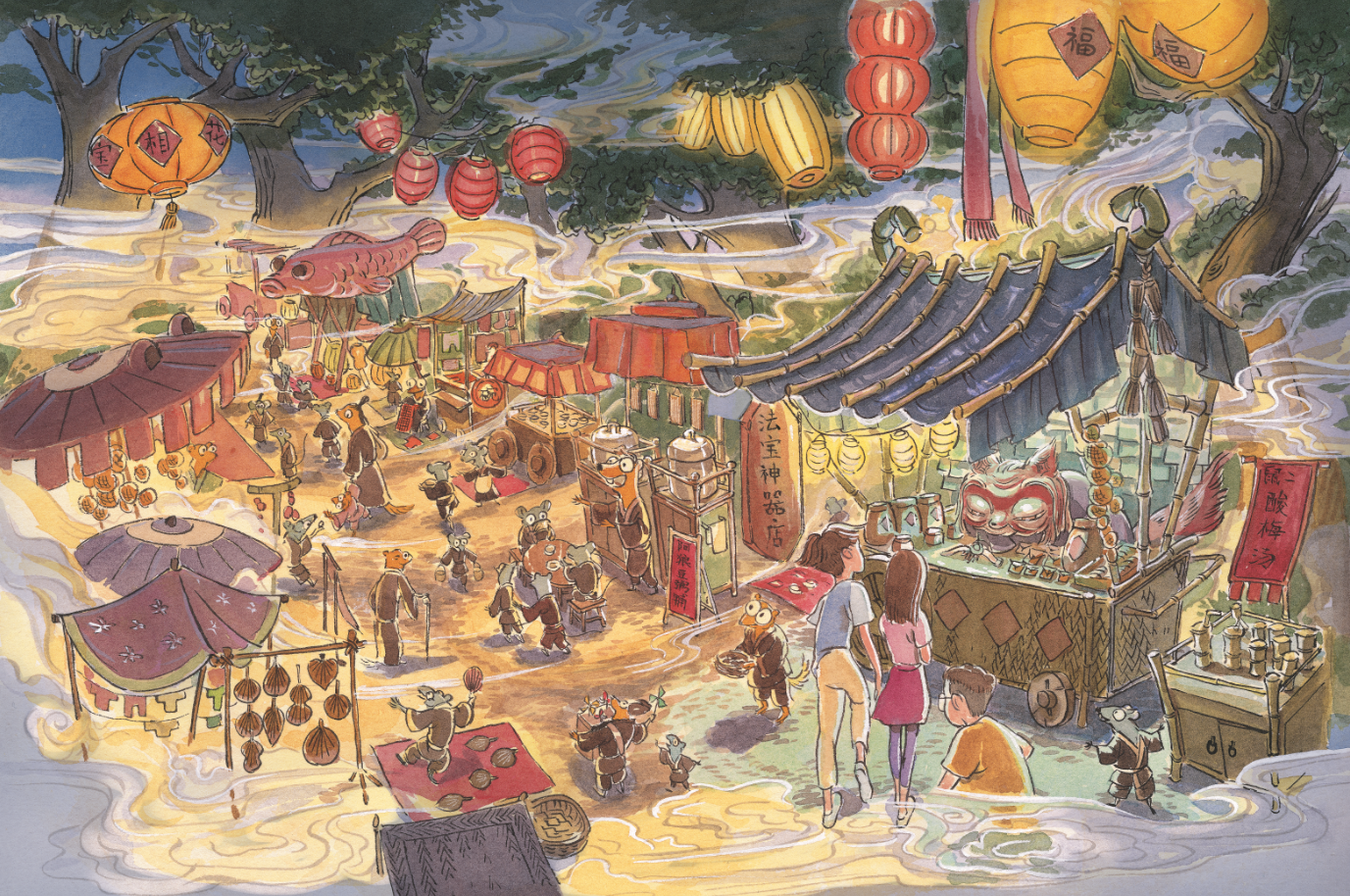 同时,插画师谭诺为《故宫怪兽谈》创作的百余幅作品。这些插画采用水彩手绘的方式,流畅的线条和丰富的色彩间,流淌着插画师对传统文化、对怪兽的热爱,对儿童心理和视觉特点细致入微的体察,也蕴蓄着插画师天马行空的想象力。