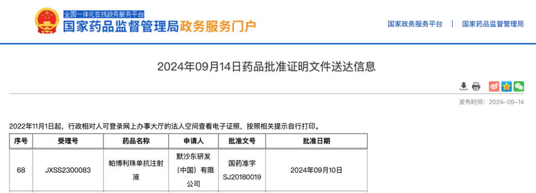 在刚刚结束的2024欧洲肿瘤内科学会(ESMO)年会上,帕博利珠单抗公布了的10年总生存期随访数据,使用帕博利珠单抗一线治疗,34.0%的晚期黑色素患者生存时间达到或超过10年。9月10日帕博利珠单抗获得国家药品监督管理局(NMPA)批准,用于不可切除或转移性黑色素瘤的一线治疗。