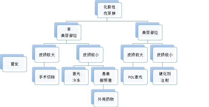 其他:包括电灼、化学烧灼、根部结扎等,由于治疗缓慢或副作用明显,遗留较大瘢痕,目前已逐渐淘汰。
