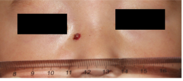 化脓性肉芽肿的临床主要表现为单发的鲜红色的小丘疹或息肉样的结节,在数周或数月内迅速增大,然后停止生长。皮损最终大小一般不超过1cm。皮损可能带蒂或无蒂。若不治疗可持续存在。化脓性肉芽肿本身是一种良性的增生物,对人体无病理学影响,也不影响儿童的身体健康或生长发育。但因皮损本身极易破损,经常在轻微创伤后大量出血,易形成溃疡。因此,大多数化脓性肉芽肿由于频繁出血、溃烂或影响美观而需要治疗。