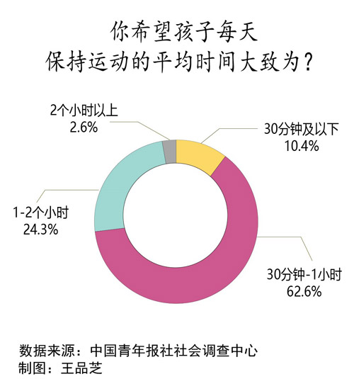 62.6%受访家长希望孩子每天保持运动30分钟-1小时