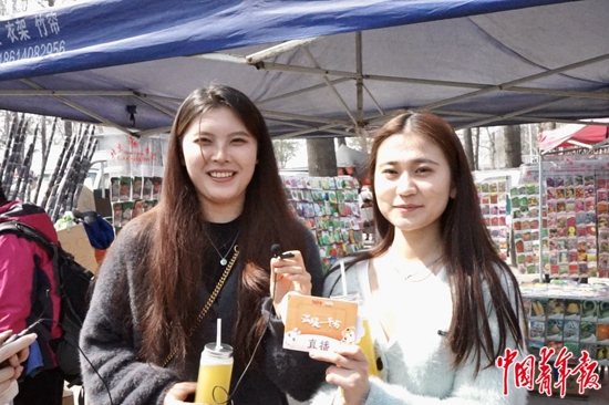正在逛沙河大集的高校学生。吴雨珊/摄