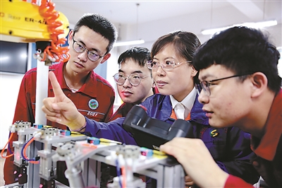 “老主任裴炳文30年扎根数控,退休返聘后,经常加班加点给师生做指导。”“骨干教师郭海青为更好了解企业需求,主动到宁波工厂锻炼一年。他带学生参加数控机床装调与升级改造赛项,连续5年获全国一等奖。”……李粉霞最得意的是他们有一支优秀的团队,团队成员的故事她如数家珍。