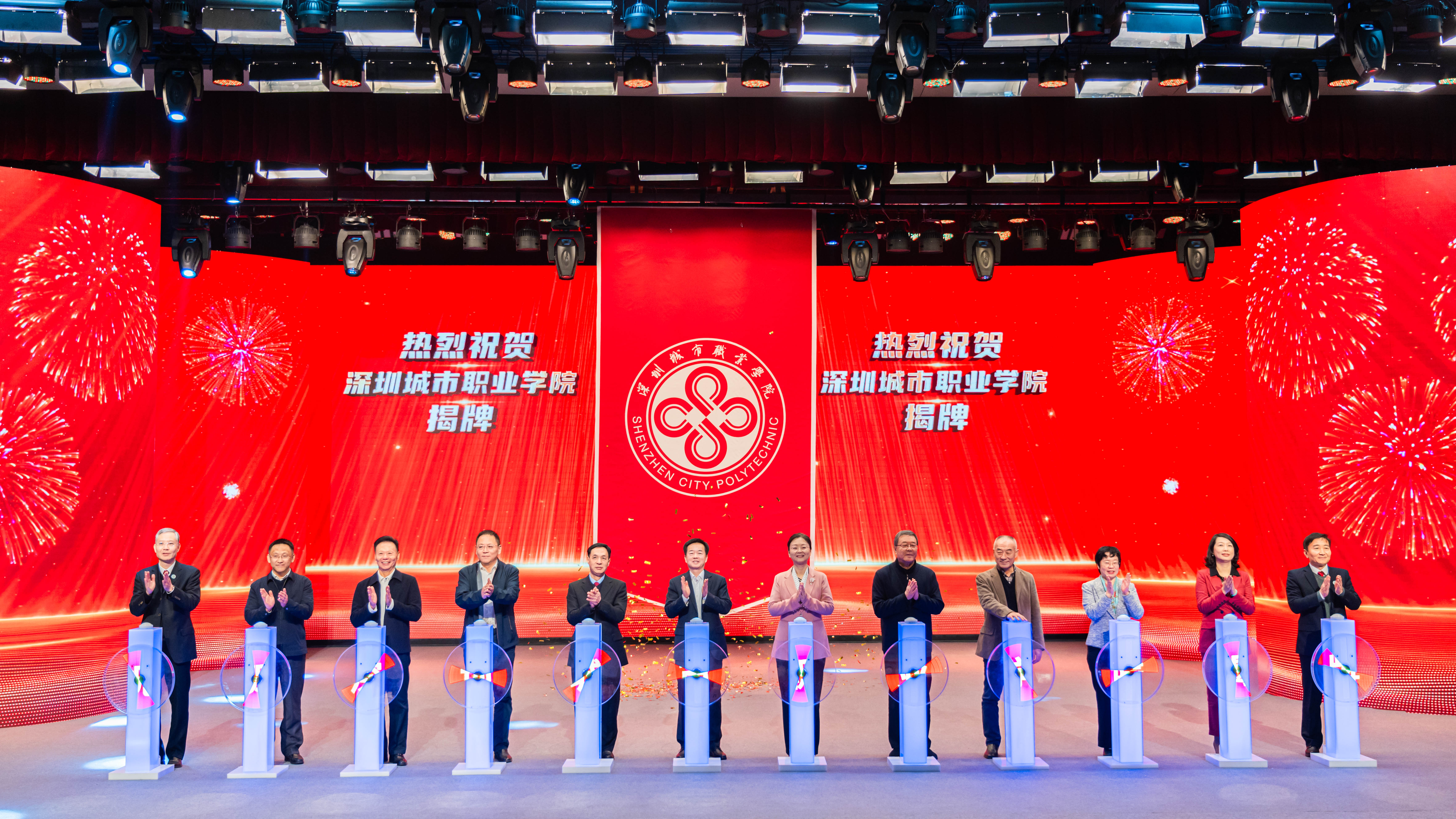 新华网北京12月27日电 27日上午,深圳城市职业学院揭牌仪式在学校会议中心举办。深圳市领导,广东省人力资源保障厅、省教育厅有关领导,市人力资源保障局、市教育局领导等共同为深圳城市职业学院揭牌。来自省、市有关部门领导,市内外有关高校领导,市人力资源保障局和学校老同志,校友代表,产业行业企业界代表,新闻媒体记者以及深圳城市职业学院教职工代表和首批学生共约1000人参加仪式,共同见证深圳城市职业学院扬帆启航、焕新出发。