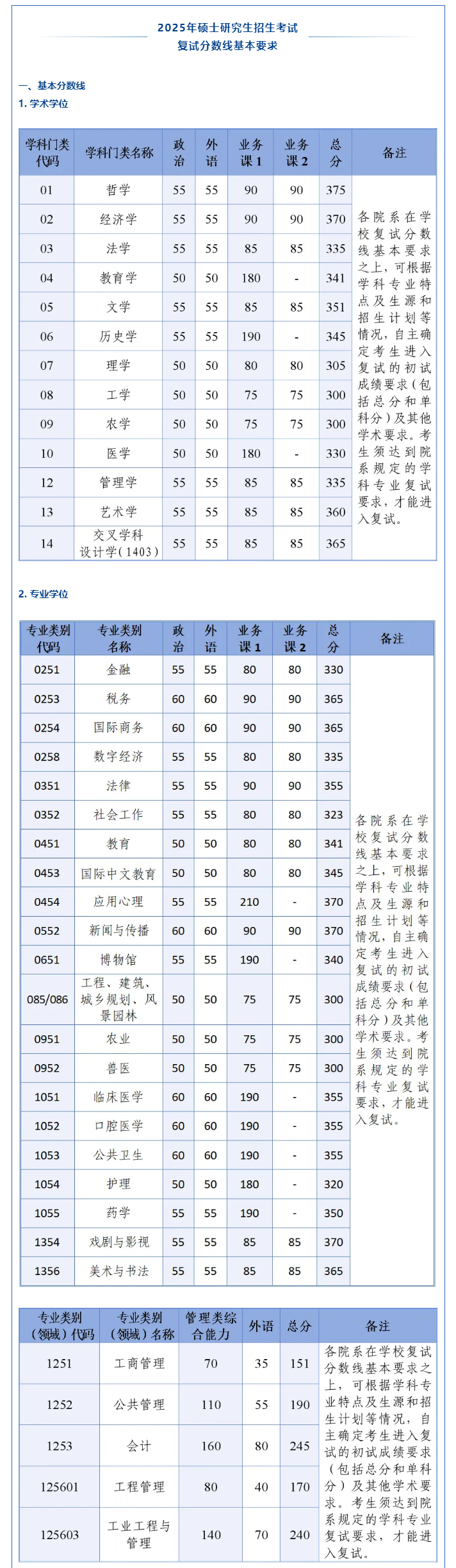 经学校研究生招生工作领导小组审议批准,现将我校2025年硕士研究生招生考试考生进入复试的初试成绩基本要求和有关说明公布如下: