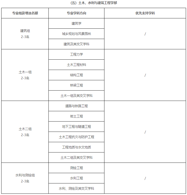 各学部专业组名额分配方案将根据有效候选人及评选情况做适当调整。