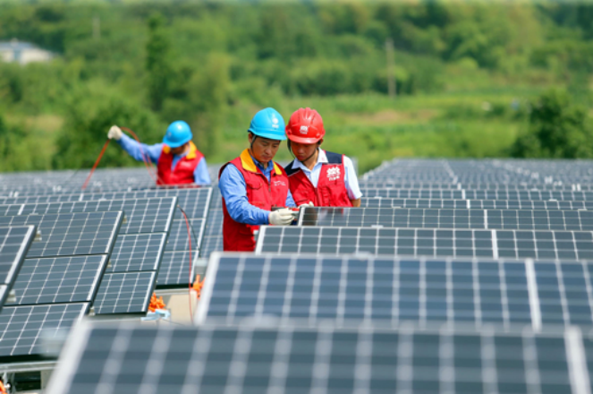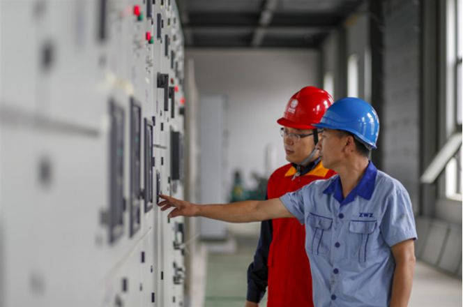 国网浙江宁波供电公司员工为企业屋顶光伏电站并网进行检查和验收