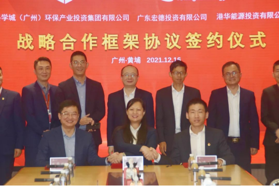 12月16日上午,港华智慧能源有限公司与科学城(广州)环保产业投资集团有限公司、广东宏德投资有限公司在广州科学城集团总部共同签署战略合作框架协议。