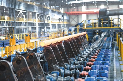 河北承德积极发展钒钛特种钢产业,引导特种钢制造智能化发展,实现特种钢材生产自动化把控,提升产品品质。图为承德建龙特殊钢有限公司无缝钢管厂生产车间。 王立群摄(新华社发)