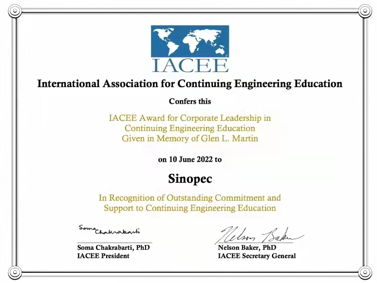 中国石化总经理、党组副书记赵东代表公司以视频方式出席颁奖仪式,他在致辞中说,面向未来,中国石化将继续推进人才强企战略,与国际继续工程教育协会、中国继续工程教育协会各成员单位加强联系、通力合作,以高质量的教育培训体系为公司全球员工创造持续学习成长的机会,以卓越的人才发展引领支撑公司迈向世界领先企业,以公司继续工程教育的成功实践为世界继续工程教育作出更大贡献。