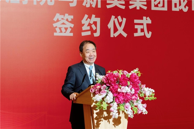 (图为新奥集团董事局主席王玉锁先生在仪式上发言)