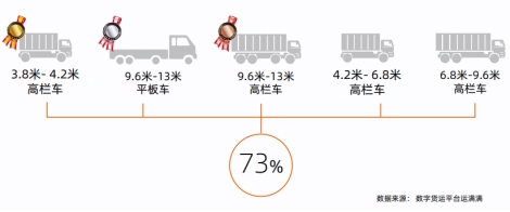 运满满数据显示,云浮当地3.8米到4.2米长的高栏车使用频率最高,尤其是运往广东省内城市以及临近周边的省份城市。中长途的运输中,多为9.6米-13米长的平板车和高栏车占比较高。