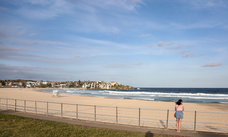 Photo taken on March 21, 2020 shows the Bondi Beach in Sydney, Australia, which was closed due to the spread of coronavirus. (Xinhua/Bai Xuefei)