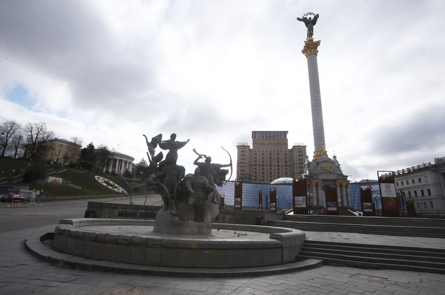 The empty Independence Square is seen amid COVID-19 outbreak in Kiev, capital of Ukraine, March 31, 2020. (Photo by Sergey Starostenko/Xinhua)