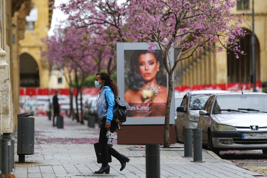 A woman wearing a face mask walks on a street in Beirut, Lebanon, on April 17, 2020. (Photo by Bilal Jawich/Xinhua)