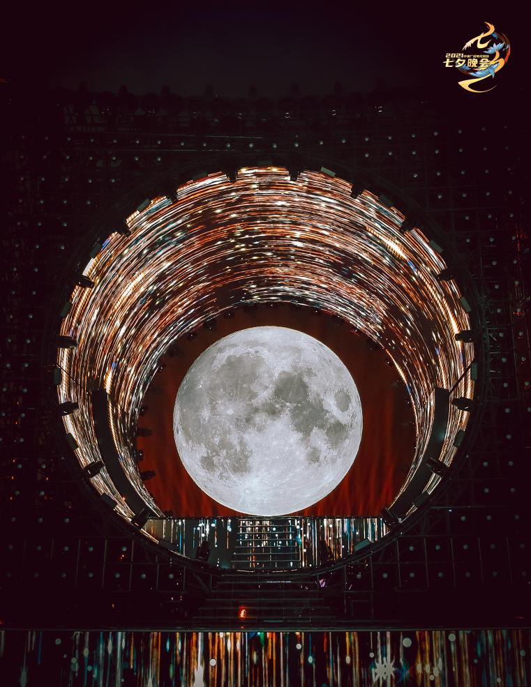 爱自九州起,情从华夏兴。情景表演《穿越千年的爱恋》上演了一场从周朝延绵至近现代的婚俗大秀,精致的服饰、唯美的画面、动情的演绎,现场舞台与AR虚拟舞台之间无缝切换,舞美造型更是引入“天圆地方”的中式哲学,带来一场如梦似幻的文化盛宴,千年时光已逝,而爱情的美好却依然直击人心。《七夕·鹊桥仙·遇见》则将观众带到数千年前的古城西安,一同探寻关于七夕的奇妙见闻,多种传统文化元素的融入让晚会有了新的打开方式,而乐府诗歌唱诵,以及蒙太奇手法电影化呈现面具舞、剑舞等也将呈现在观众面前,这将是一次古今的对话、一次时光的凝聚,同时也是一次与千年悠长岁月再重逢的奇景。