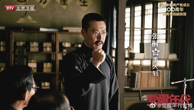 张桐先后在电视剧《觉醒年代》(图)《光荣与梦想》、电影《红船》及中国共产党成立100周年文艺演出《伟大征程》中演绎了李大钊。 图片来自剧方官微及张桐微博