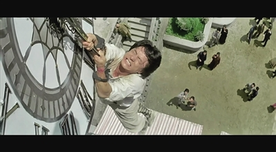 《A计划》中成龙拍摄跳钟楼全景镜头的危险系数很高。