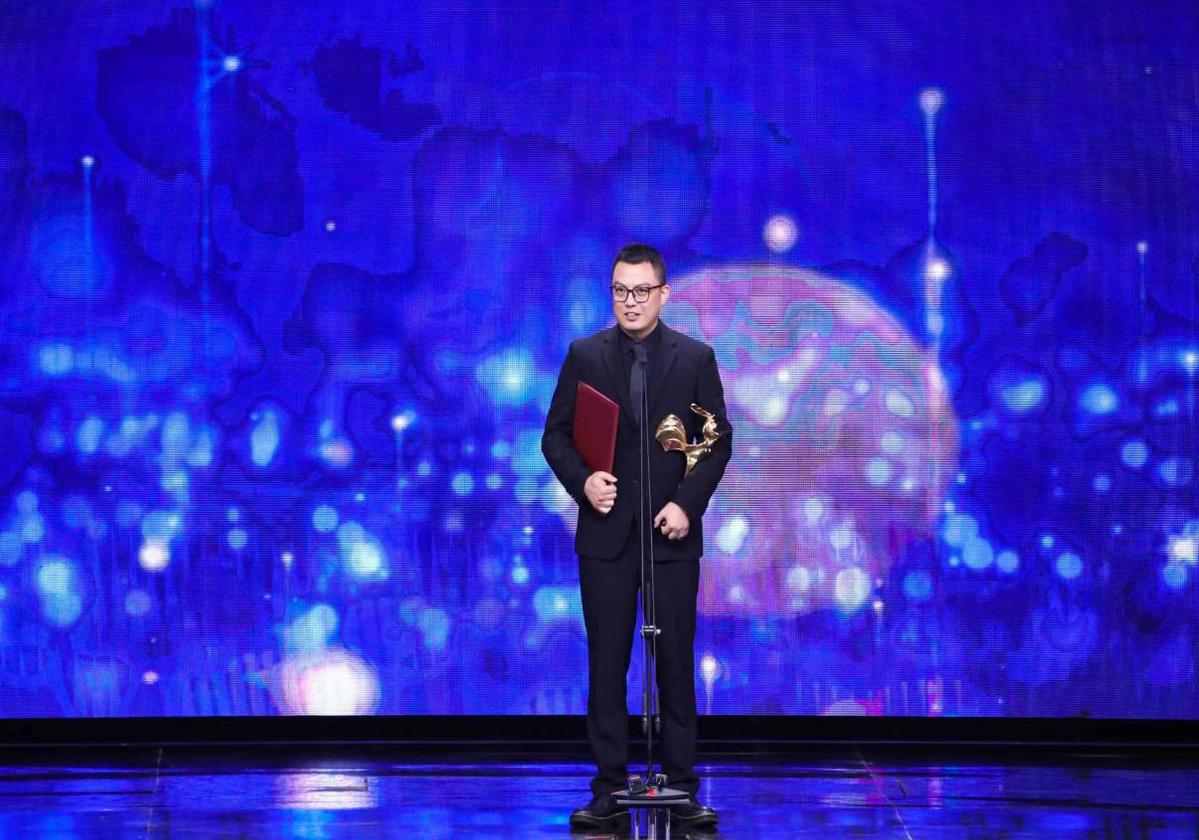 《独行月球》导演张吃鱼代替未能到场的彭飞上台领奖
