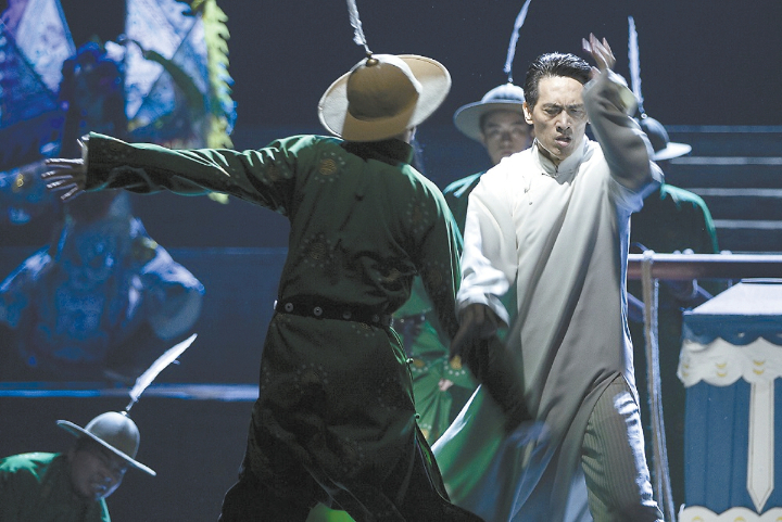 比如,冯梦临离开天津前与附有他亡子灵魂的树木作别时,灯光制造出的树影婆娑;生万物去世时,纸扎飞机的升空飞远;“重塑雕像的权利”乐队成员刘敏打造的暗合人物情绪波动、时而温煦时而冷冽的电子配乐……都极具想象力和冲击性,引领观众走进已然远去但追忆起来情真意切的武林世界。