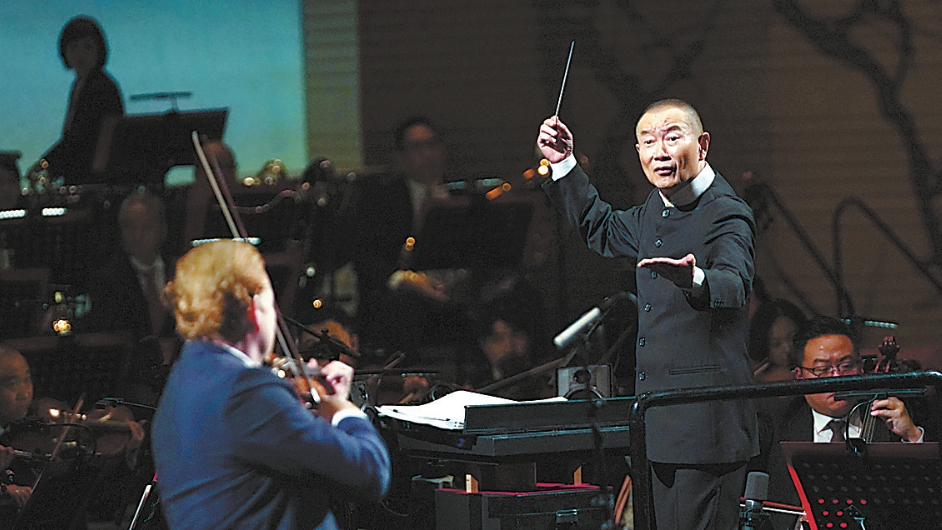 李安的《卧虎藏龙》、张艺谋的《英雄》和冯小刚的《夜宴》,这3部闻名世界的华语武侠电影,其实都与著名作曲家谭盾有关。那些与光影交织的经典旋律被谭盾以协奏曲的形式汇编成《武侠三部曲》,回响在第25/26届北京国际音乐节的舞台上。昨晚,谭盾执棒中国爱乐乐团,与著名小提琴家丹尼尔·霍普、钢琴家孙佳依、大提琴家聂佳鹏共同登台保利剧院,影音同现,回味深长。