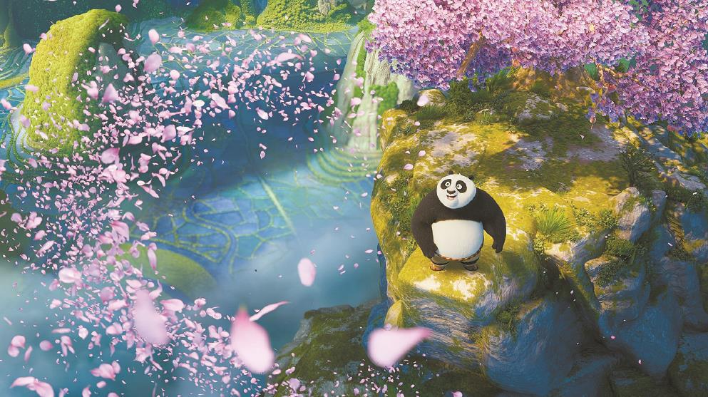 《功夫熊猫》系列对中国文化的选择是以国际观众的欣赏为出发点,拼贴了其最熟悉的两个中国元素:熊猫+功夫。除了功夫之外,《功》系列对于中国山水、建筑、食物、风俗等的使用也都是以国际观众熟悉为前提的灵活“拿来主义”。图为《功夫熊猫4》剧照