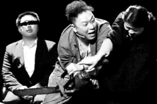 公共场所”,导盲犬才得以入馆。更限制导演组发挥的,是剧团没有经费。马岩决定,《逆转未来》的舞台走极简风。布景只有三把椅子,道具不过是一个玩具电锯,几副塑料眼镜。演出服装来自演员的衣柜。就连化妆师也是赵春悦充任。男演员们干脆不化妆。