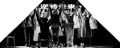 剧终,温暖的场光亮起,掌声连绵不歇。台上,有演员牵起导盲犬,有人拽出盲杖,有人转动轮椅……17名演员手拉手,鞠躬谢幕。著名导演赖声川坐在观众席前排,与其他几位评委一样,被这部剧“吓了一跳”。2024年3月,北京乐意剧团的原创话剧《逆转未来》从百余部剧本中脱颖而出,参加南京新剧荟的竞演,斩获最佳剧目奖。在评委们的推荐下,将在10月份登陆中国顶级戏剧殿堂——乌镇戏剧节。