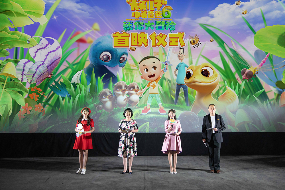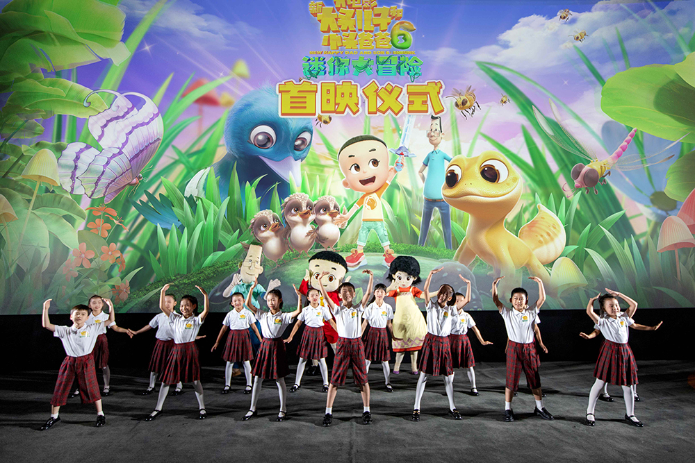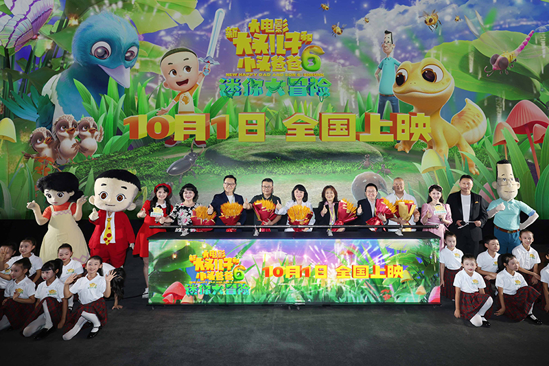 动画电影《新大头儿子和小头爸爸6:迷你大冒险》9月29日在北京首映,中央广播电视总台银河少年艺术团的小演员们和大头儿子、小头爸爸、围裙妈妈人偶一起跳起萌动可爱的舞蹈,总台主持人鞠萍、小鹿、黄炜、陈怡等也来到现场。