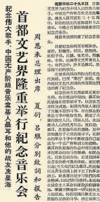 在1960年的那场纪念聂耳和冼星海音乐会上,《开路先锋》《救国军歌》《在太行山上》《怒吼吧,黄河》等革命歌曲全场激荡,人们回忆起革命年代,被革命前辈的斗争精神所深深感染和激励。(1960年10月30日《北京日报》4版,《首都文艺界隆重举行纪念音乐会》)