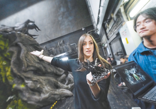 《女武神》舞美设计师埃莱奥诺拉·佩罗内蒂手拿模型。北京日报记者 方非摄