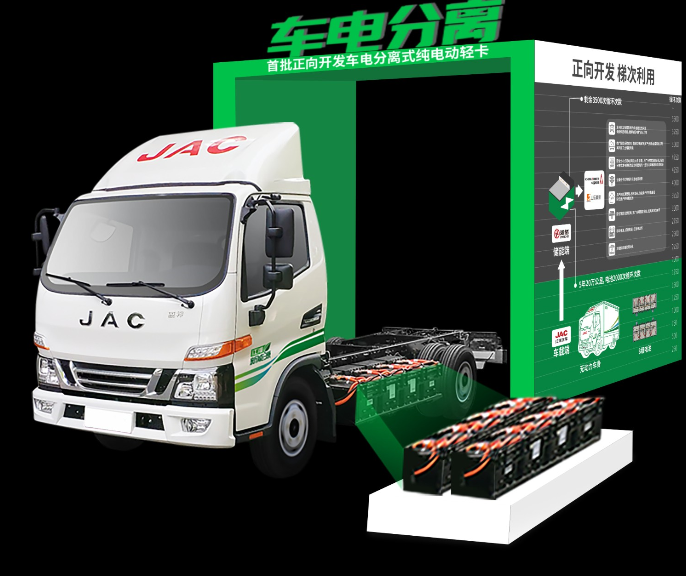 对于新能源轻卡市场来说,里程焦虑、补能焦虑、价格焦虑等问题仍然困扰用户,因而换电车型越来越受欢迎。为促进新能源轻卡的推广应用,江淮轻卡打破传统,首批正向开发车电分离式纯电动轻卡,用户在购买新能源轻卡时可以只买裸车(不含电池的无动力车身),电池通过租赁服务拥有,有效降低用户购车成本,而且用户无需担心电池衰减而引起车辆快速贬值。