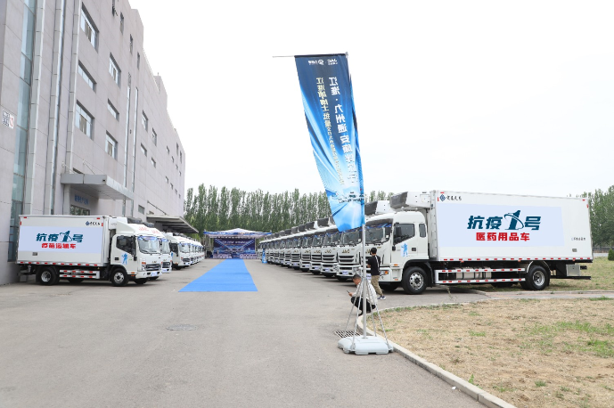 “抗疫1号”疫苗运输车、“抗疫1号”医药用品车:疫苗冷藏车、医药冷藏车为抗击疫情贡献最大。众所周知,疫苗、药品冷链运输一直处于冷链行业的金字塔顶尖,疫苗、药品全国配送,涉及到全国人民的生命健康,对配送全过程要求更高,温度需要可控可追溯、对存储、温度有着极严格的要求。江淮轻卡在打造冷链专用底盘的基础上,匹配车联网3.0系统,联合上下游企业,与一线品牌冷机定制合作,并与行业头部冷链改装企业建立战略合作关系,实现专用底盘、专属厢体、大牌冷机一体化交付,并制定专属服务响应,推出冷链1号帅铃、骏铃、康铃、恺达、德沃斯疫苗冷藏车军团。得到医药物流企业的高度认可以及九州通医药集团等企业的大批量采购,2021年6月4日,江淮汽车成为中物联医药物流分会疫苗运输保障工作组正式成员单位中唯一的整车厂家。