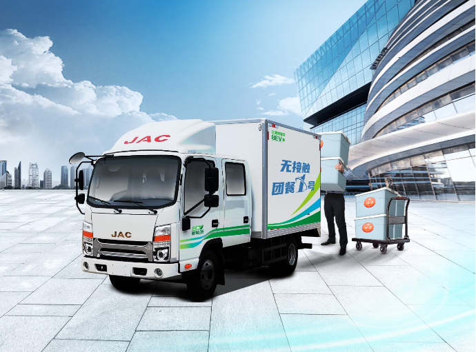 “抗疫1号”后勤保障车:在抗疫后勤保障方面,江淮恺达冷藏车,配备冬季取暖保温货厢,温湿度计,保障疫情送餐恒温不凉;“团餐1号”江淮新能源轻卡,无惧高油价的同时,干净无污染,有效解决疫情下团餐配送中人货混装的问题。
