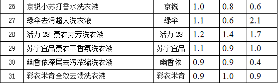 新华网北京9月7日电(胡可璐)9月7日,中国消费者协会发布31款洗衣液比较试验报告。报告显示,有24款对标准污布的去污能力强于标准洗衣液,表现良好。多数洗衣液样品对咖啡污渍的洗涤效果不理想,洗前需要另做处理。31款洗衣液样品pH测试结果显示,均为中性或弱碱性,洗涤中不会对织物造成损伤。