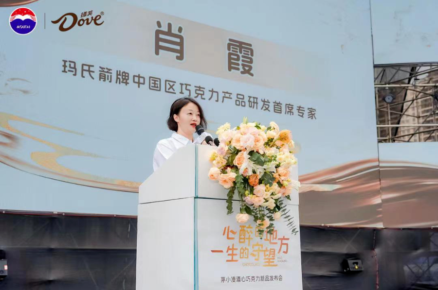 丁雄军在致辞中表示,玛氏集团是具有百年历史厚重底蕴的世界级食品企业,旗下拥有士力架、德芙、绿箭、益达等众多广为知晓的消费类品牌,产品畅销全球100余个国家和地区。茅台与玛氏的合作,是双“M”的美美组合,“中华老字号+国际知名品牌”的品牌联合,希望创出双倍“美好”的产品,给广大消费者带来加倍的消费体验和品饮感受。“茅小凌酒心巧克力”的广告语为“心醉的地方、一生的守望”,心醉的地方,这颗巧克力是酒心的,既让人们的心田为之心醉,也为神秘茅台和多彩贵州这片文化旅游的醉美圣地而心醉;一生的守望,就是吃了、带了、送了之后,会对酒心巧克力、对茅台、对贵州产生心心念念的、镌刻一生的守望。