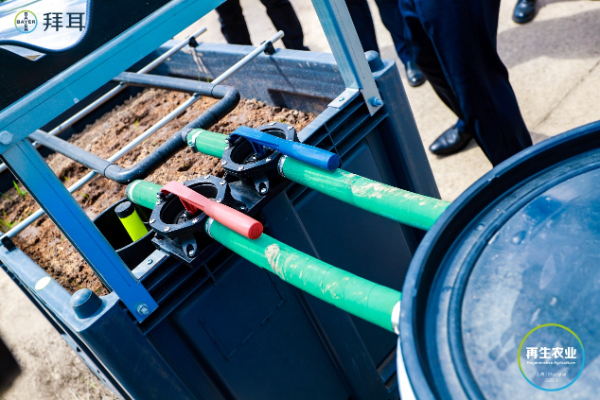 作为再生农业的落地项目,拜耳在本届进博会上展示了“耘远农场”的本地化实践与探索,包括easyFlow M封闭式农药配药及空包装清洗装置和土壤微生物降解农药废液装置Phytobac mini水乐洁,这两款产品能够有效解决农药包装废弃物及农药废液的处理问题,免于土壤和水源遭受农药废液污染,有效保护农业生态环境,促进农业绿色发展。