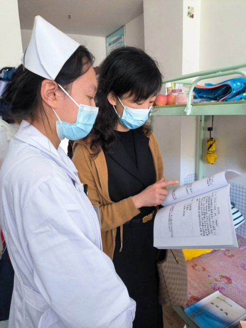 学校“护考”工作一直由教务科牵头负责,统筹教学管理与学生管理。在教学层面,教务科与参加“护考”的班级保持密切沟通,协调任课教师、学生及班级管理的各项需求,密切关注教情学情,引导班风学风,并及时将教学工作安排及教学中发现的问题反馈给班主任,让班主任深入参与到护考管理过程中,发现问题、解决问题。在班级管理层面,班主任们用自己的言传身教感染着班级的每一个学生。而这种“爱”,用一块“小饼干”就能起到意想不到的效果。20级助产班的一位同学在备考期间出现焦虑情绪,甚至为了回避可能面临考试不通过的打击,产生退学念头。班主任王宁为了她能顺利进行考试,牺牲自己休息时间倾心陪伴、不断鼓励。就在进考场前,为缓解她的紧张,王宁拿出提前准备好的她最喜欢吃的奥利奥饼干,亲手喂进她嘴里:“我会一直陪着你,正常发挥就没问题!”成绩公布,原本列在“护考”不通过危险名单里的她,竟然超水平发挥,考出701分、班级第8的好成绩。成绩出来后,她哭着给王宁打来电话,“老师您知道吗?进考场前您喂我的那块小饼干,给了我无穷大的力量。”