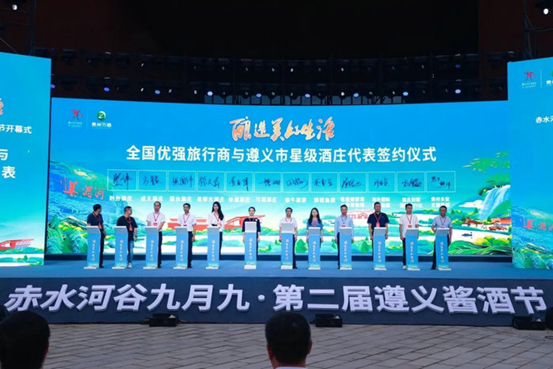 活动现场,醉美遵义文旅推荐官发布赤水河谷酒旅精品线路产品。随后,全国优强旅行社与遵义市星级酒庄代表签订战略合作协议,携手把赤水河谷的美酒、美食、美景推向更多游客,合力助推打造赤水世界级旅游景区。