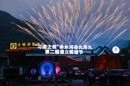 满山秋色迎宾客,一河美酒醉乾坤。秋天的赤水河如玉带般蜿蜒流淌在群山之中,坐落在赤水河畔的土城古镇,在霞光照耀下熠熠生辉,与开幕式现场的华光溢彩交相辉映,绘就了红色传承与绿色生态、酱香白酒与文化旅游融合发展的壮丽图景。