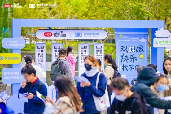 近期,莎普爱思再度联合小红书及美团买药、国大药房,在上海在新天地广场开启“来滴双眼快乐水”生活备药指南快闪活动,通过新奇有趣的互动装置、生动精彩的产品讲解、通俗易懂的眼健康知识科普,向公众传递干眼防治、爱眼护眼的重要性。