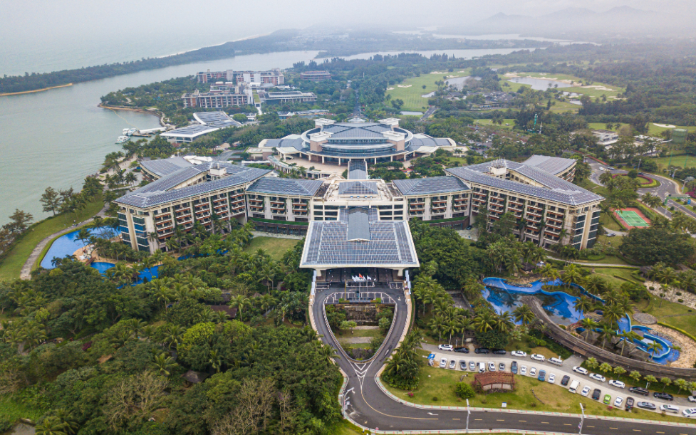博鳌亚洲论坛国际会议中心和博鳌亚洲论坛大酒店(3月9日摄,无人机照片)。新华社记者 蒲晓旭