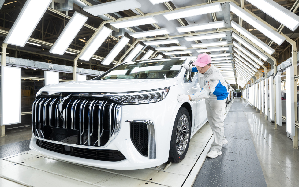 4月1日,在位于湖北武汉市经开区的岚图汽车数字化总装车间,工人在流水线上作业。新华社记者 肖艺九 摄