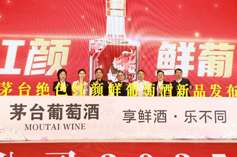 会议当天正值冬至。冬至,既是有吉祥寓意的重要节气,也是太阳新生、开启新循环的美好起点。会议现场重磅推出全新产品——茅台绝色红颜鲜葡萄酒,开创茅台多元化品类鲜酒赛道,打造“中国鲜酒”IP,以独特酿造工艺和新潮时尚魅力丰富茅台产品线,开启聚势而行,向新出发的新篇章。