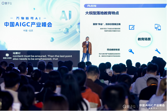 陈建华介绍,教育场景有4大特点:一是聚焦“学会”,而非仅答案正确;二是激发学生学习主动性是一项极具挑战性的任务;三是需要遵循科学、系统的教研体系;四是对准确率要求非常高。