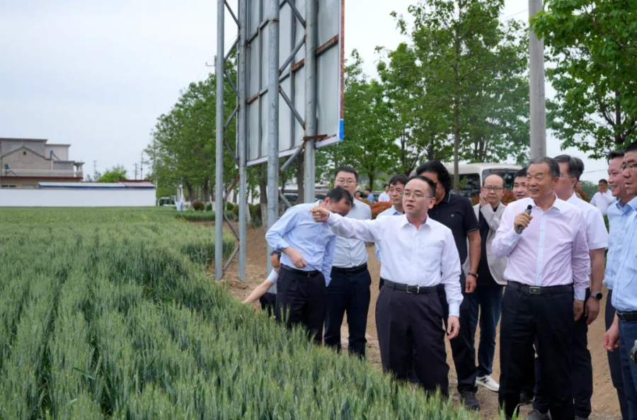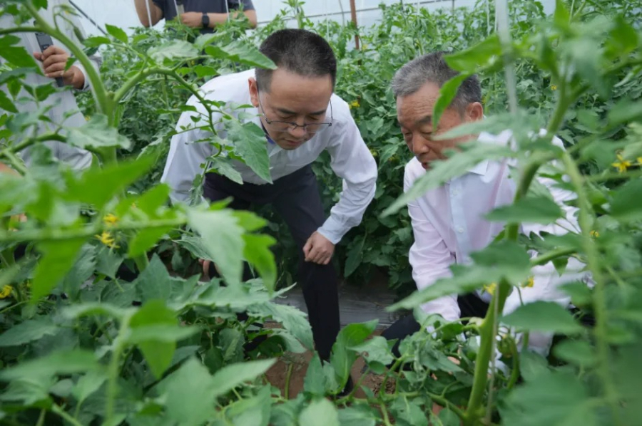 张德芹(右二)、高山(左一)调研李寨村蔬菜基地